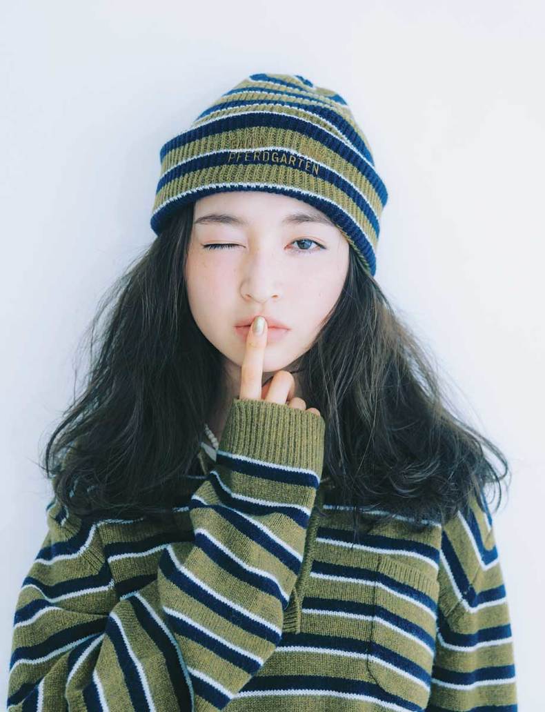 もともとボーダー柄はフランス発祥ゆえ気負いないヘアスタイルがお似合い。ってことで、ドライな質感のダウンスタイルとニット帽のゆるコンビをリコメンド。
