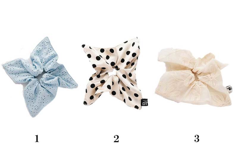 1.シュシュ ¥2,090/ゴールディ 2.シュシュ¥1,870/ ドタイプ(アンティローザ) 3.シュシュ ¥2,310/カスタネ(カスタネ 新宿ルミネエスト店)