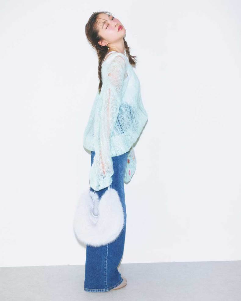 「やはり、ふわ&透けニットがモテ服のようです(私調べ)。それにしても、かなりのイケメンだったのにときめかないなんて…。これは、気持ちを認めるしかないよね♥ オーバーサイズ&透けるモテニットにはデニムを合わせてカジュアルに。ファーバッグでふわふわ感&守りたい感を強めて。イケメンにもこのコーデで声をかけられたし、彼との次のデートはこのニットにしようかな…♥」