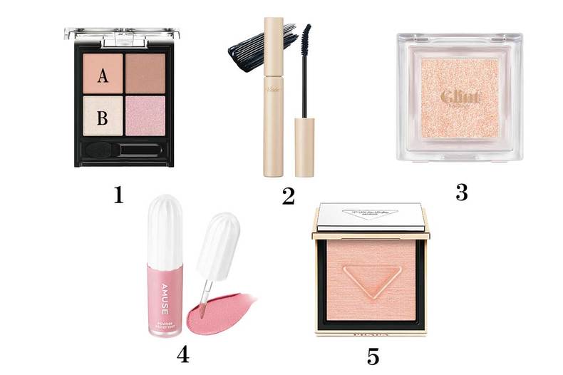 1-Aをアイホールと下まぶたに、1-Bを目頭にのせる。アイシャドウはチークや ハイライトに近いトーンをセレクト。