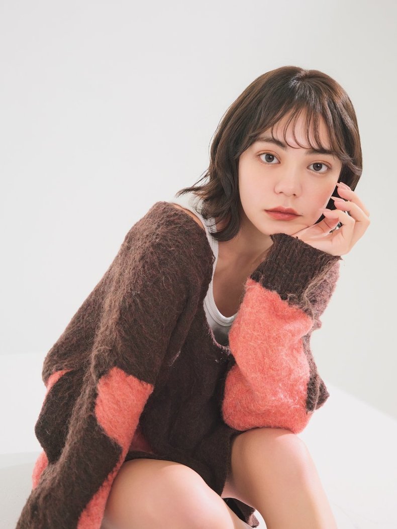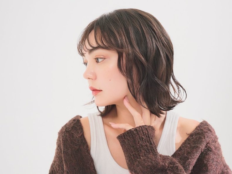 THE王道の暗髪ベージュは、日本人特有の赤みを抑えつつ自然にくすんだ質感に仕上げるのが最大のポイントに。ブリーチは使わずにワンメイクで2トーンほど明るくして、ダークトーンだけど透明感たっぷりに仕上げを。光を味方につけることで、カールがさらにふわっと柔らかな印象に。