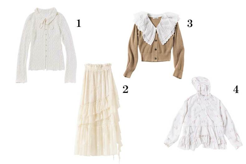 1.シャツ¥8,690/ダズリン 2.スカート¥19,910/リリー ブラウン 3.ニット¥17,930/スナイデル 4.ブルゾン¥34,000/ボクボク