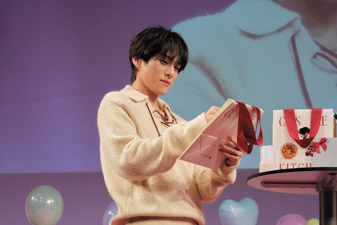 爽やかな登場で会場の皆さんの目が♥に。山下さんは「コスメキッチン」とコラボし、ホリデーシーズンにぴったりのアイテムを紹介。おちゃめなリアクション連発で、来場者は山下さんの一挙手一投足に惚れ惚れでした♥
