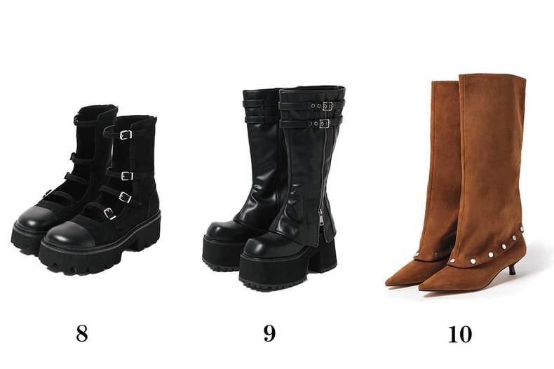 9.レッグウォーマーのようなカバーデザインのブーツ。平成レトロを感じるボリューム感。