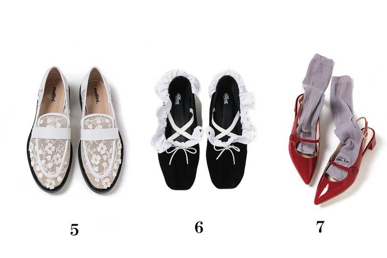 5.今季の筆頭シューズでもあるローファーは総レースでロマンティック仕様。