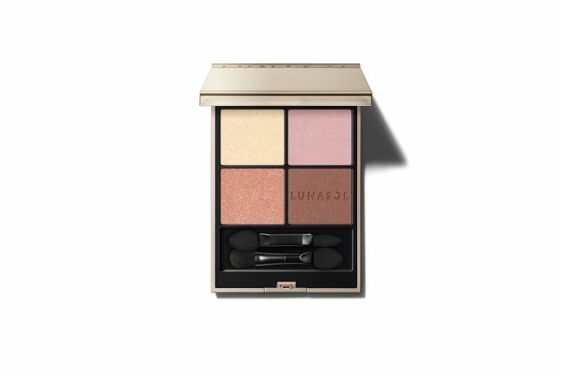 「 まろみベージュとニュアンスラベンダーピンクの組み合わせが、最高に可愛いく洒落ています。まさに今季のトレンドカラー&質感。春夏らしく優しい発色なのに、ぼやける事なく立体感のある目元に。ブラシやチップで磨くように塗れば塗るほど上品なツヤが出せます。どのカラーをレイヤードしてもにごる事なくまとまるし、もちろん単色も透け方がきれいで、見惚れるまぶたに!」(ヘアメイク・河嶋希さん)
