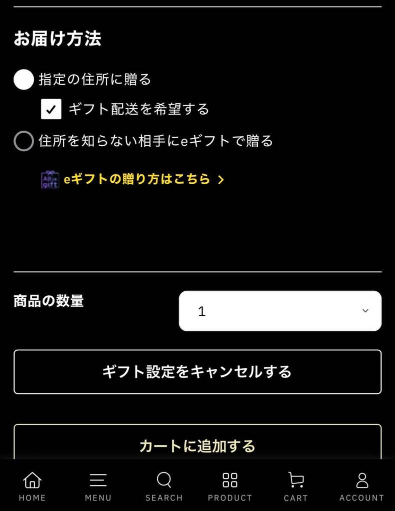 見た目も高級感があってプレゼントにぴったりな上に、公式サイトからはギフト配送やeギフトの指定もできるのもありがたいポイントです。
