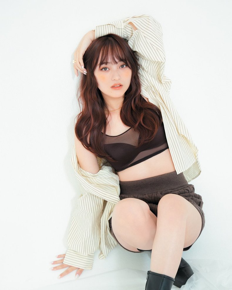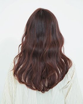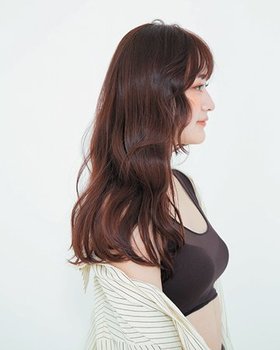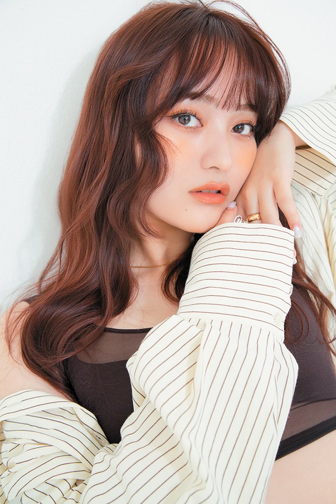 天真爛漫なイメージから一転、顔まわりの見え方にこだわったデザイン感のあるカットラインで、ドキッとしちゃうような大人びた表情に。全体にレイヤーをしっかり入れて動きを出し、顔まわりのサイドにプツッとした姫カットをオン。アイロンでゆるんとしたアンニュイウエーブに仕上げを。