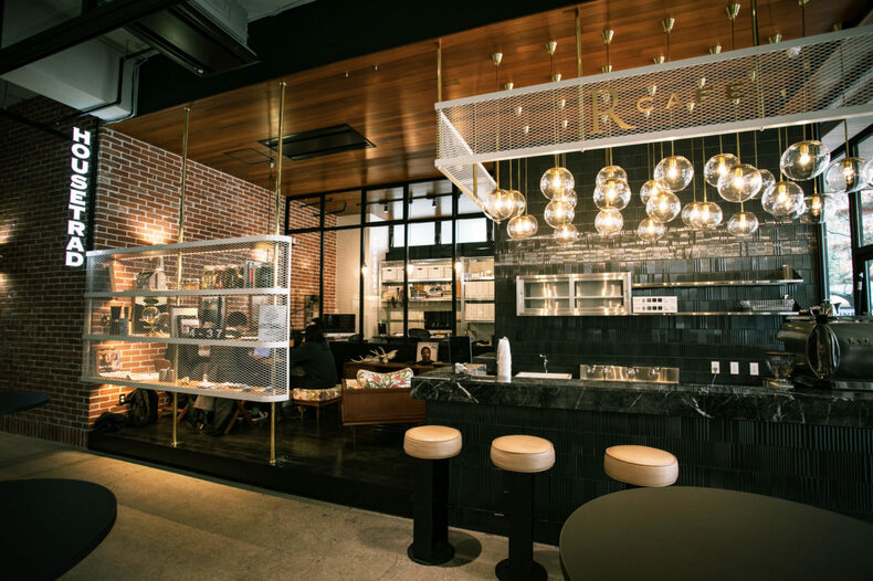 1階には通りに面したカフェスペース“ROJU CAFE”があります。ビル入居者の方だけではなく、一般の方々もご利用可能なスペースとなっており、お仕事の息抜きはもちろん、ラフな打ち合わせにも最適なスペースです。