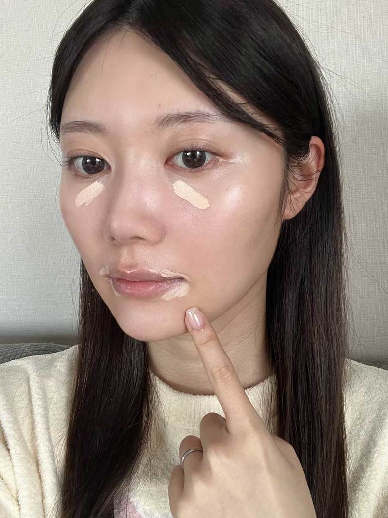 使うのはコンシーラー。私が必ずコンシーラーを入れる場所は目の下のクマと口周り。特に口角にコンシーラーを入れると口周りの印象が洗練されるのでお気に入りです。