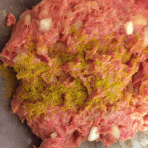 ②豚挽肉を塩で捏ね、(A)と①の玉葱を加え更にこねる。
