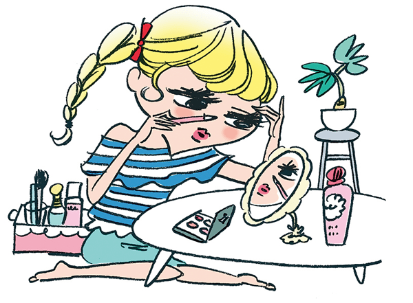 メイクをする時、自分の目線よりも低い位置に鏡がある人はアウト〜! 「目線より下に鏡があると、顔を見ようと背中を丸めますよね。これがもう猫背の状態。毎日やっているとクセになるのは当然です」(古城さん)