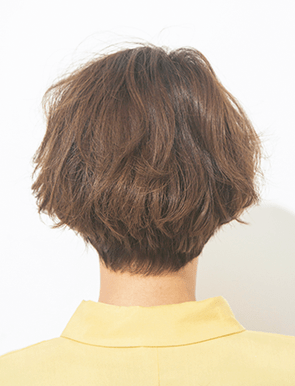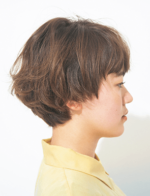 おちゃめな可愛さと気取らないカッコよさが にじみ出る自然体マッシュ。短くしすぎず、耳が半分見えるくらいで甘さを添えつつ、眉毛ギリギリの前髪でクールテイストもイン。全体を大きめのロッドで毛先巻きにすれば、くしゅくしゅっと動かして乾かすだけで 忙しい朝も簡単に可愛く!