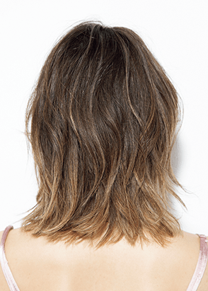 7トーンのカーキベージュに、ブラウン、ベージュ、グレーでハイライトを。 奇抜になりがちな多色使いでも、ブラウンべースのグラデーションだったら品よく、でも華やか♥ 毛に軽さを出したウルフの場合はとくに、表面は細く、中間〜毛先には太めに入れるとハイライトが主役に!