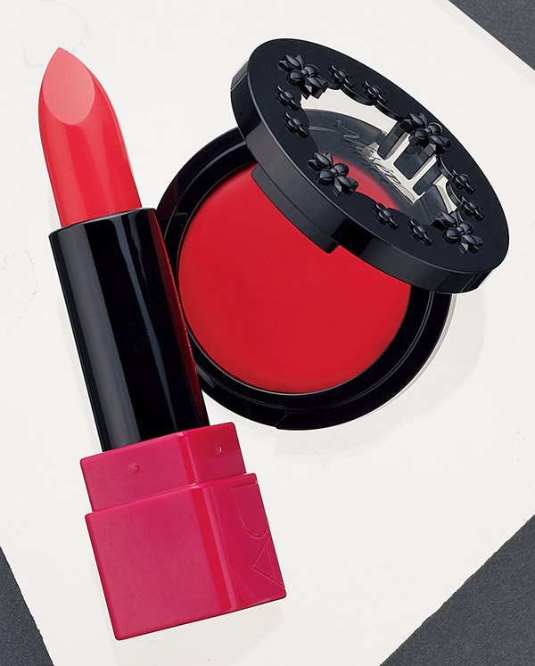 (右)内側からにじむような血色感を演出。ヴィセ リシェ リップ&チーク クリーム RD- 1 ¥1,000/コーセー(左)アイシャドウにも使えて、これ一本でメイクが完成。アディクション チーク スティック 05 ¥2,800