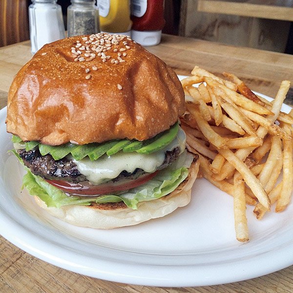 写真のアボカドモッツァレラバーガー(¥1,300)はじめ、美味かつ多彩なバーガーがズラリ。