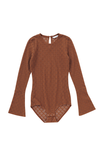 たつかないインナーとしておしゃれ人からの指名が殺到しているボディスーツ。甘くないブラウンレースをチラ見せしたい♥ ¥24,800/ホリデイ