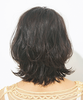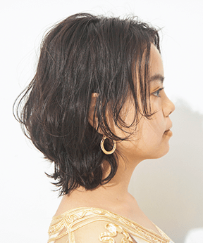ロックンロールなテイストをできるだけ排除した大人レディのための控えめショートウルフ♡ボブベースで表面と顔まわりにレイヤーを入れてほしいところに動きを出し、襟足は動きやすくなるようにしっかり量感を削る。外ハネのカールで毛先をいろいろな方向に散らして、女らしいくびれを出すのがカギ!