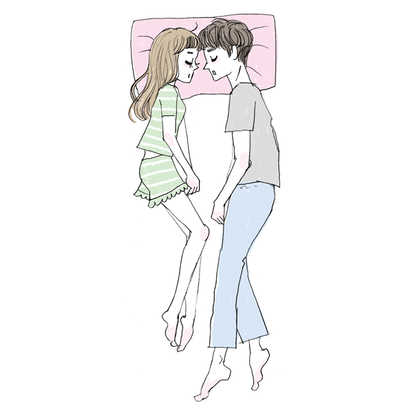 カップルが向かい合って眠れるのは想いが通じ合っていることのあらわれ。ただし「この体勢のまま強く抱き合って眠っているとしたら、少し考えもの。お互いへの依存度が高く、愛情のバランスが少しでも不安定になると相手を束縛したり、疑心暗鬼になったりしかねません。それぞれが自分の時間を大切にしてお互いを尊重できるようになれば、二人の関係はもっと良好に」。
