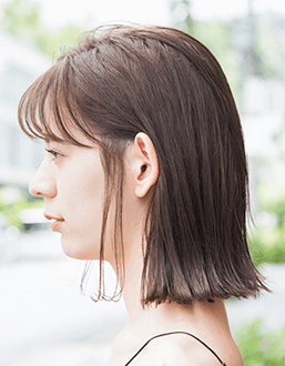 夏に向けて、オーダーが殺到しているのが肩ラインの外ハネボブ。 ただの切りっぱなしではなく、毛先には重さを出しつつ、内側にグラデーションを入れてまとまりやすい質感に。毛先が重い分、前髪はシースルーで軽やかさを出す。丸く可愛くなりすぎないように、全体を外ハネにスタイリングし、ウエットな質感でヌケ感をイン! 色気もカッコよさも叶える、おしゃれな外ハネボブの出来上がり♡