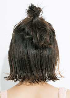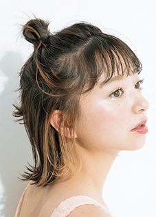 耳上に入れたハイライトをしっかりアピールできる、おだんごハーフアップでおしゃれを満喫♡ アレンジする時は、ハイライトの毛束を少し入れて結ぶと、おだんごに向かう色の筋が見えてイメージアップできちゃう。