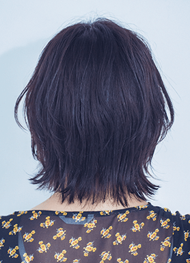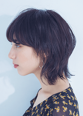 マッシュラインとハイレイヤーを組み合わせたこちらは、ちょっぴりウルフ気分を楽しみたい女子にぴったり。 前髪やもみあげの内側にハイライトを忍ばせて、黒髪に柔らかな抜け感を与えて。アイロンで全体に揺れ感を添えれば、ほわんと優しげな表情が際立つ。