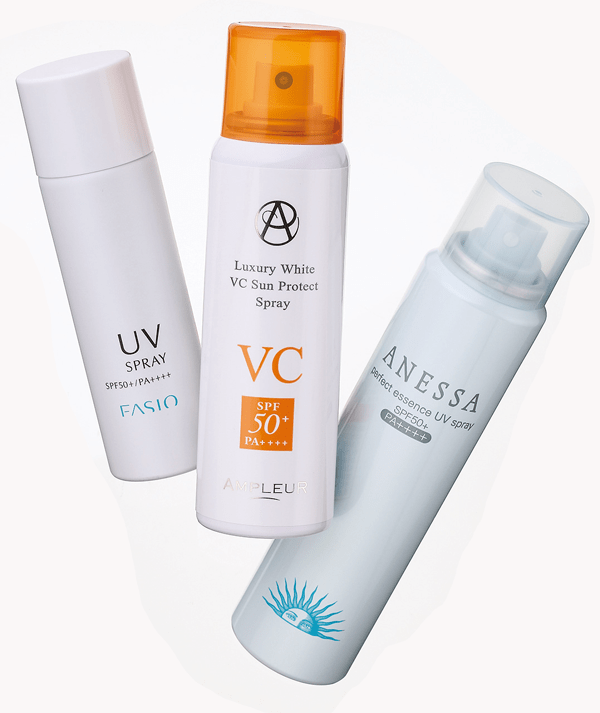 18最高SPF値とは思えないライトなつけ心地。アネッサ パーフェクトエッセンスUVスプレー SPF50+・PA++++ 70g ¥1,800(編集部調べ)/資生堂 19紫外線の他、肌の炎症や汗のべたつきもブロック。アンプルール ラグジュアリーホワイト VCサンプロテクトスプレー SPF50+・PA++++ 70g ¥2,000 20ウォータープルーフなのに石けんでオフできる。ファシオ UVプロテクトスプレーN SPF50+・PA++++ 35g ¥800/コーセーコスメニエンス(編集部調べ)