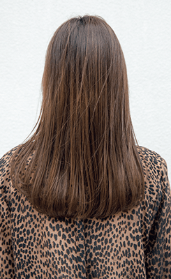 レイヤーはほとんど入れず重めにブラントカットし、面で魅せる品のあるスタイルに仕上げたら、やや幅広につくった前髪でクール感をプラス。