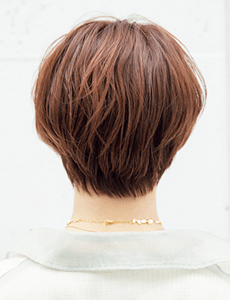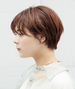 前髪は目の上の長さにカットして甘さをセーブし、襟足は短めながらレザーでカットして柔らかく仕上げて。