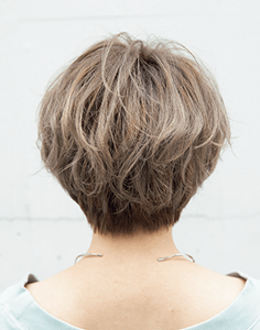 ハイトーンのパールベージュをチョイスすることで、重くなりがちなマッシュを軽やかに見せ、柔らかな印象に。