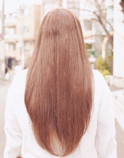 元々の色から一度12レベルまでトーンアップした後、8トーンのプラチナブラウンをのせ、色素が薄く見えるようなカラーリングを施す。柔らかさと透明感を引き出すこのカラーのレイヤードがキモ。ウエーブスタイルよりも、グッと色味が楽しめるストレートと好相性!