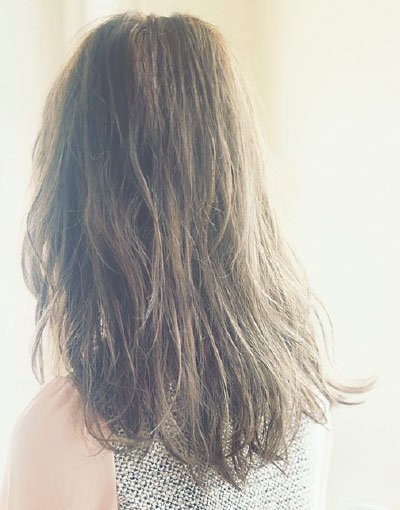 冬らしく落ち着いたトーンでも束感が透けやすいように、12トーンまでトーンアップした髪に7トーンのアッシュを重ね塗り。ゆるい外巻きカールをくしゃっと崩して、顔まわりにまとわりつくルーズな毛束が色っぽさをアピール。媚びないのに女らしいヘアって無敵!