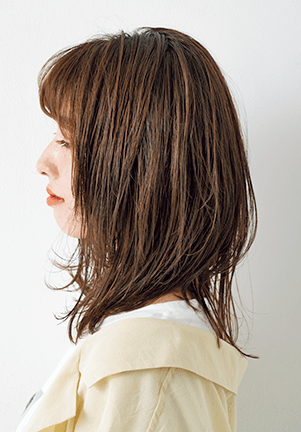 顔まわりに厚め&短めのレイヤーを入れたら、前方へ巻いて強調したり、後ろへなじませて隠すこともできて、スタイリングでオン&オフの切り替えが楽しめるスタイルに。頭の丸みに沿って中間にもレイヤーを加えるとメリハリ感がアップ。裾を外ハネに巻き、くびれを演出すると美シルエット❤︎