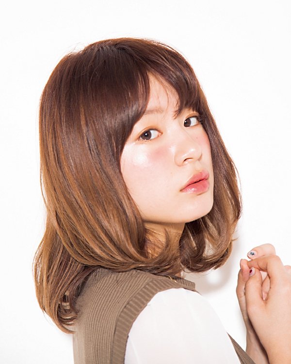 ハチまわりを間引くようにカットする一方で、毛先に厚みを残す絶妙なシルエットが髪の表面をピカピカに。全体を重めに仕上げる分、バングのところどころに透け感を出すことで、抜け感をプラス。顔まわりのさりげなレイヤーで小顔効果も奪取。9オーキッドベージュのカラーもツヤめきを応援☆ モデル/ゆきらさん