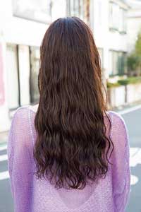 ゆるくて均一なウエーブが今っぽい。全体は胸下、バングはあごラインでカット。ロングロッドでリバースとフォワードのミックススパイラルに。均一なウエーブが重なり合うことでまとまりすぎずヌケ感が出る。顔に沿うように入れたベージュのハイライトでほどよくパンチを効かせて。