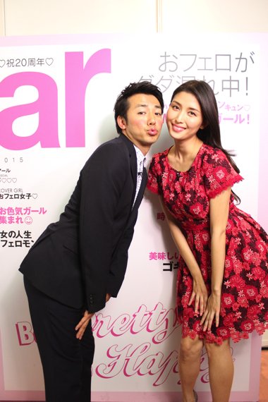 女子博の裏側をレポートしていたグラビアアイドルの橋本マナミさんとピース綾部さん。