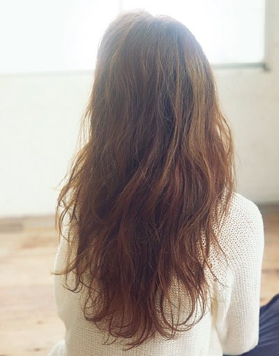 太めロッドで全体を巻き込んだゆるやかなウエーブロング。あらかじめ束っぽさをつくるように カットで隙間を仕込み、カラーはハイ&ローライトで立体感をオン。素髪っぽさをつくっていく感覚で、ワックスをくしゅっともみ込めば完成。ラフなクセ毛風ロングに技あり!