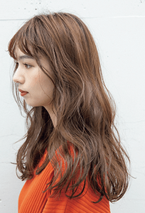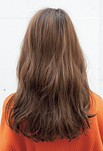 ウエーブをしっかりほぐしてドライに仕上げつつ、ところどころバームで束感とツヤ感を加えて、洗いざらし風の無造作な印象に。