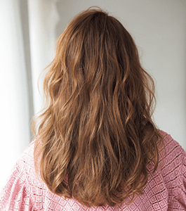 ブリーチは使わず、ライトナーで全体に細かくハイライトを入れてモノトーン+バイオレットをかぶせたら、まろやかさと透明感を兼ね備えた、ベアージュカラーが誕生!褪色しても明るくなりすぎないので、ハイトーンが苦手なコにもおすすめ。細めのアイロンで巻いてドライヤーでふわっと崩し、シアバターで毛先にほのかなツヤをON。