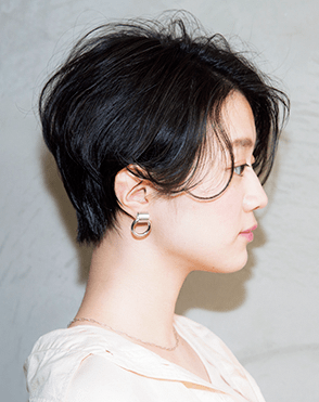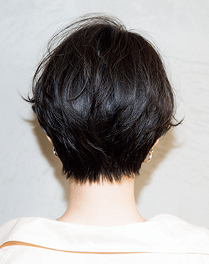 キリッとしたストレートのラインがカッコいいトランクスヘアにニュアンシーなパーマを加えたら、みるみるうちに色っぽく。トップを持ち上げるように内巻きにパーマをかけ、毛先にはしっかりとカールをつけて。奔放な毛先をつくり出すことでおしゃなやんちゃ感はしっかりキープ♡
