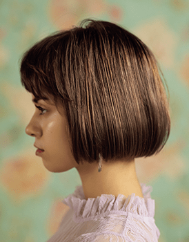 ほんのりグラデーションカットを仕込んで、軽やかに内外に遊ぶ毛先が可愛さを印象づけるタッセルボブ。前髪は2層に分けた表面に段を入れて動きを出しやすく。仕上げはシアバターをくしゅっと。ヴィンテージ感のあるラベンダーピンクのカラーを合わせたら、今っぽおしゃれなロマンティックボブのできあがり♡