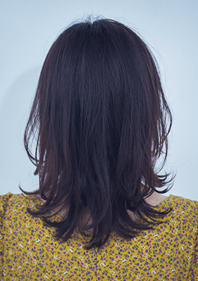 レザーでわざと毛先に厚みを残して切り、ウルフのシャープな印象を軽減。 のばしかけの前髪もリズミカルなレイヤーのおかげでうっとうしさはナシ。 長さをキープしたまま、手軽にイメチェンができるから嬉しい! 仕上げはバームを使って、うるっとしたツヤ感で女子度と清楚感がさらに上昇♡