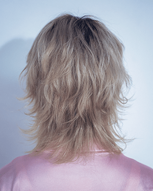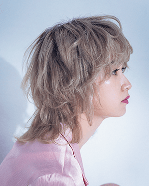 トップから裾までたっぷりのレイヤーでランダムな動きを出したウルフ。おしゃれ上級者を狙うなら、黒髪よりもクールなシルバーブロンドのハイトーンカラーを選ぶべし。半乾きの状態でトリートメントジェルをなじませてスタイリングし、動きと束感をキープ。